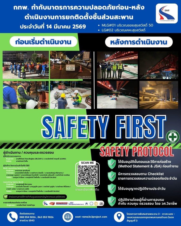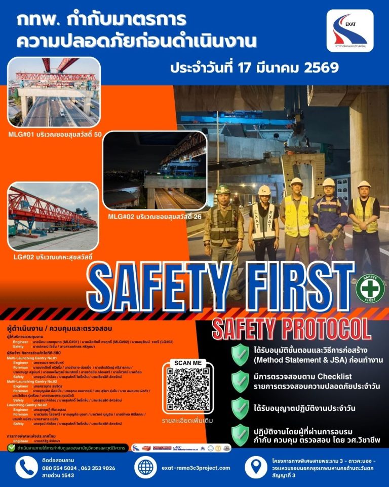 👷♂️🚧 กทพ. คุมเข้ม! ยึดหลัก SAFETY FIRST กำกับมาตรการความปลอดภัยก่อนดำเนินงาน 🚧👷♂️ ประจำวันที่ 17 มีนาคม 2569